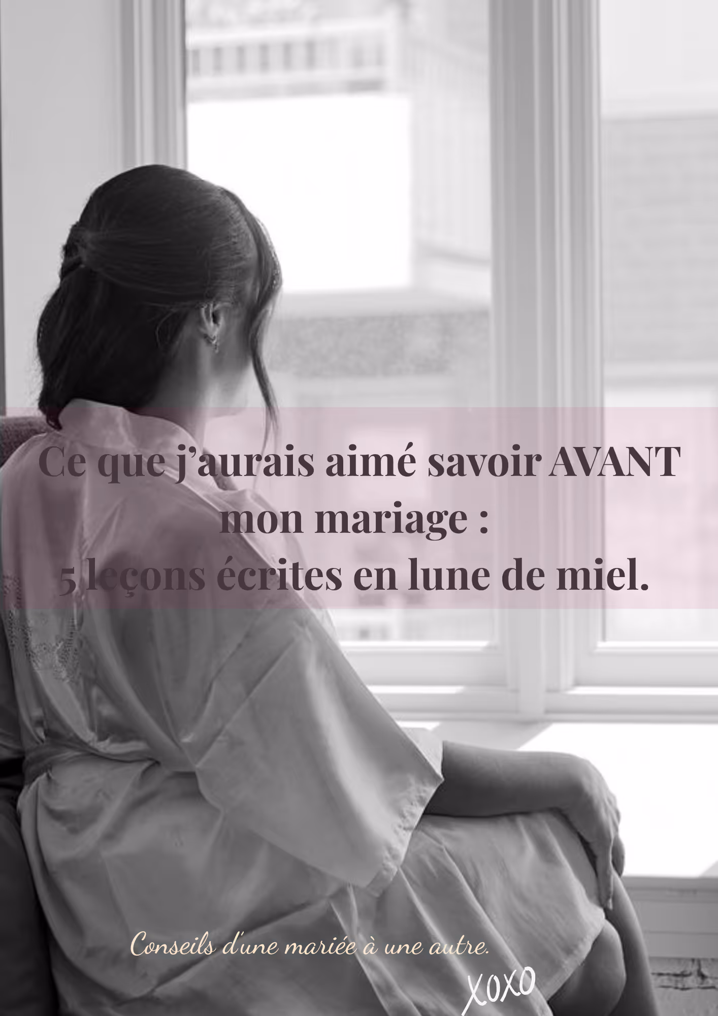 J’ai appris, j’ai adoré, mais j’ai aussi payé quelques erreurs évitable. Jai donc écrit cet e-book sincère (pendant ma lune de miel oui,oui) pour te dire ce que personne ne dit et t’éviter le stress inutile sans faire exploser ton budget.